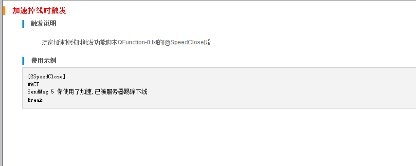 玩家加速掉线时触发功能脚本QFunction-0.txt的[@SpeedClose]段