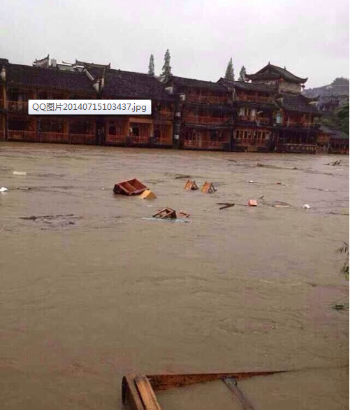14号以来暴雨来袭,凤凰古城防汛形势严峻,刚刚才从凤凰那边收到消息,洪水已经进入古城核心景区,不少店铺已经进水,古城的景区内的道路已经无法通行,电力、供水中断,一小部分临江低房屋水位已经接近房顶,笔者先后致电凤凰县防汛办,县委宣传部,防汛办的工作人员24小时值班,据县委宣传介绍,目前,凤凰县所有的在家领导干部已经进入景区内进行抗灾救灾,武警消防官兵也进入灾区进行抗灾、帮助转移财产、疏散群众,洪水无情,众志成城,有理由相信在凤凰全县人民的努力下一定能够战胜洪水,我们坚定相信你们能够防护下来。
