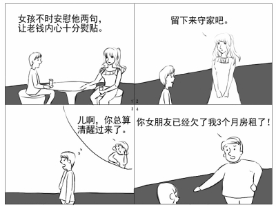 而最让人恼火的还在后面,当老钱急欲离开去找那个骗子美女时,房东突然冲进来,一把揪住他说:“你女朋友已经欠了我3个月房租了!她说她明天就不租我的房子了,叫我找你拿租金,你今天不付清,休想离开!”
