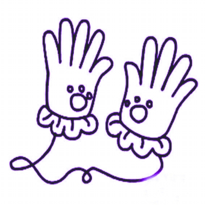 我每次戴手套时,先把线绳挂在脖子上,然后把小手分别塞进手套里,冰冷的小手一下子就暖暖的了。