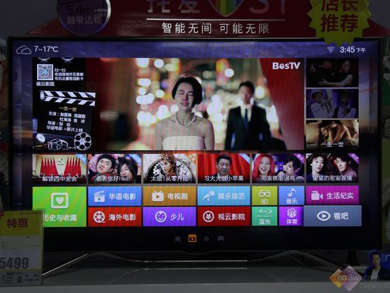 万维家电网小编在卖场理解到,搭载华数派司的电视有索尼、LG等品牌。华数是全国最年夜的互动电视、3G手电机视和互联网电视分析数字化内容的运营商和供应商。与300多家著名节目内容供应商和制片商创设了历久的计谋协作关系,建成了国际最年夜的数字化节目内容资本库。在收集电视开展早期,与华数协作的电视品牌极度之多,而此刻出现削减的趋向。