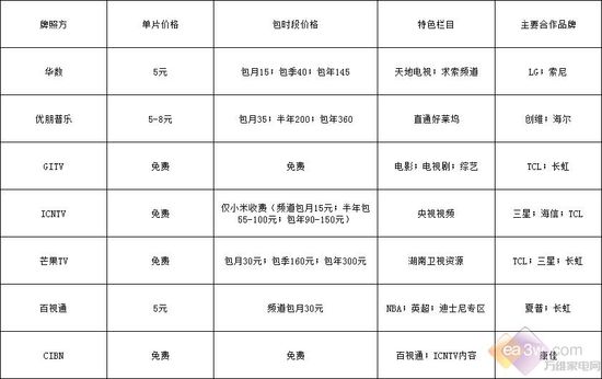 访问卖场过程当中小编发觉,年夜都搭载互联网派司的电视(文章)视频内容可一般播放,同时各品牌在选择派司方时停止协作时也具有差别。彩电品牌会依据产物定位分歧、彩电宣布时光推移等身分来选择七年夜派司方中的一家停止协作,确保电视内容厚实,可供用户停止收看。关于派司方与品牌彩电协作具体小编也做出总结: