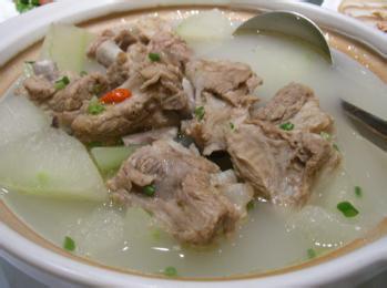 排骨、冬瓜、姜同时下锅,加清水烧约30~45分钟,加调味料,再焖数分钟即可食用。