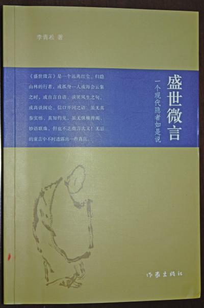 青凇先生赠我作家出版社新出版的著作《隐行者》两册:我之歌》 、盛世微言》。我之歌》是其六行诗集 ,业界多有好评 ,此前我已读过。盛世微言》介于诗与随笔之间 ,体裁独特 ,风格迥异于过往 ,且多奇思妙想 ,一下勾起了我的阅读兴趣。盛世微言》全书共分七辑 ,分别为:孤独与隐逸 、我这个人 、诗人与时代 、圣哲与创造 、自由与镣铐 、爱情与火焰 、人啊人啊。书中多片断式的思考和情绪表达 ,看似零散 ,实则凝聚了作者多年来的所见 、所闻 、所感 、所思 ,通过对自身的深层次挖掘 ,以近乎梦呓的方式抒发了独特的生命体验。诚如作者在该书《前言》中所说:这是我远离尘境 ,归隐山林和自性 ,而孤身一人或是海会云集时 ,或自言自语 、谈笑风生之句 ,或高谈阔论 、信口开河之语。虽无真参实悟 、真知灼见 ,虽无纵横捭阖、妙语联珠 ,但也不乏微言大义!